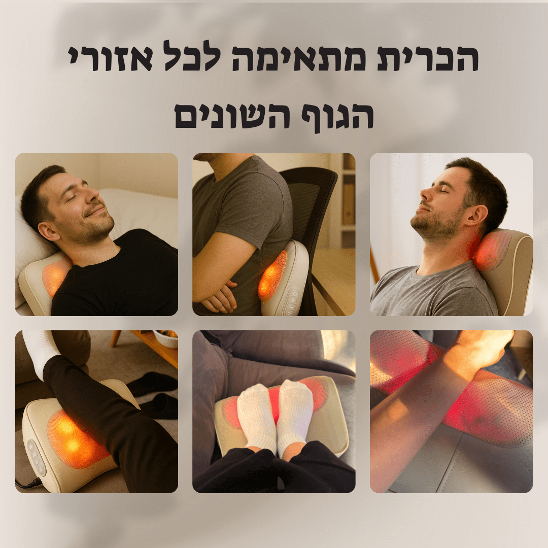 הכירו את כרית העיסוי שלנו שמיועדת לאנשים שמחפשים פתרון איכותי, נוח זמין וזול לכאבי שרירים, מתיחות, ועייפות.